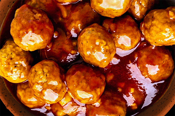 - In a bowl, combine Carmine’s ‘Q Sauce, water and remainder of minced onions; pour over the meatballs and bake for 45 minutes.