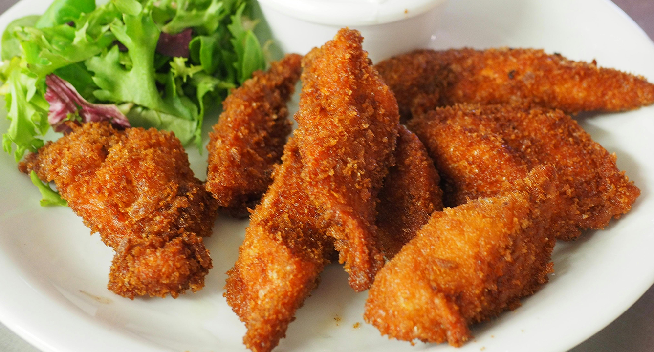 - Place egg-washed strips into breadcrumbs; toss and flip strip, pressing down to help crumbs to adhere