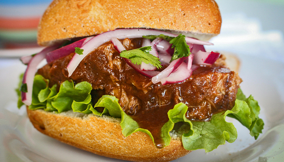 - Shred pork with forks, add it to the sauce and slowly mix until fully combined